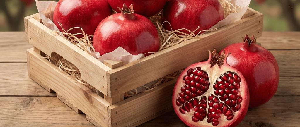 Our Bhagwa pomegranates are sourced directly from reputed farms in India, especially from regions known for producing export-grade fruit. The fruits are cultivated using best agricultural practices and harvested at the right maturity stage to ensure superior taste, attractive appearance, and long transit durability.